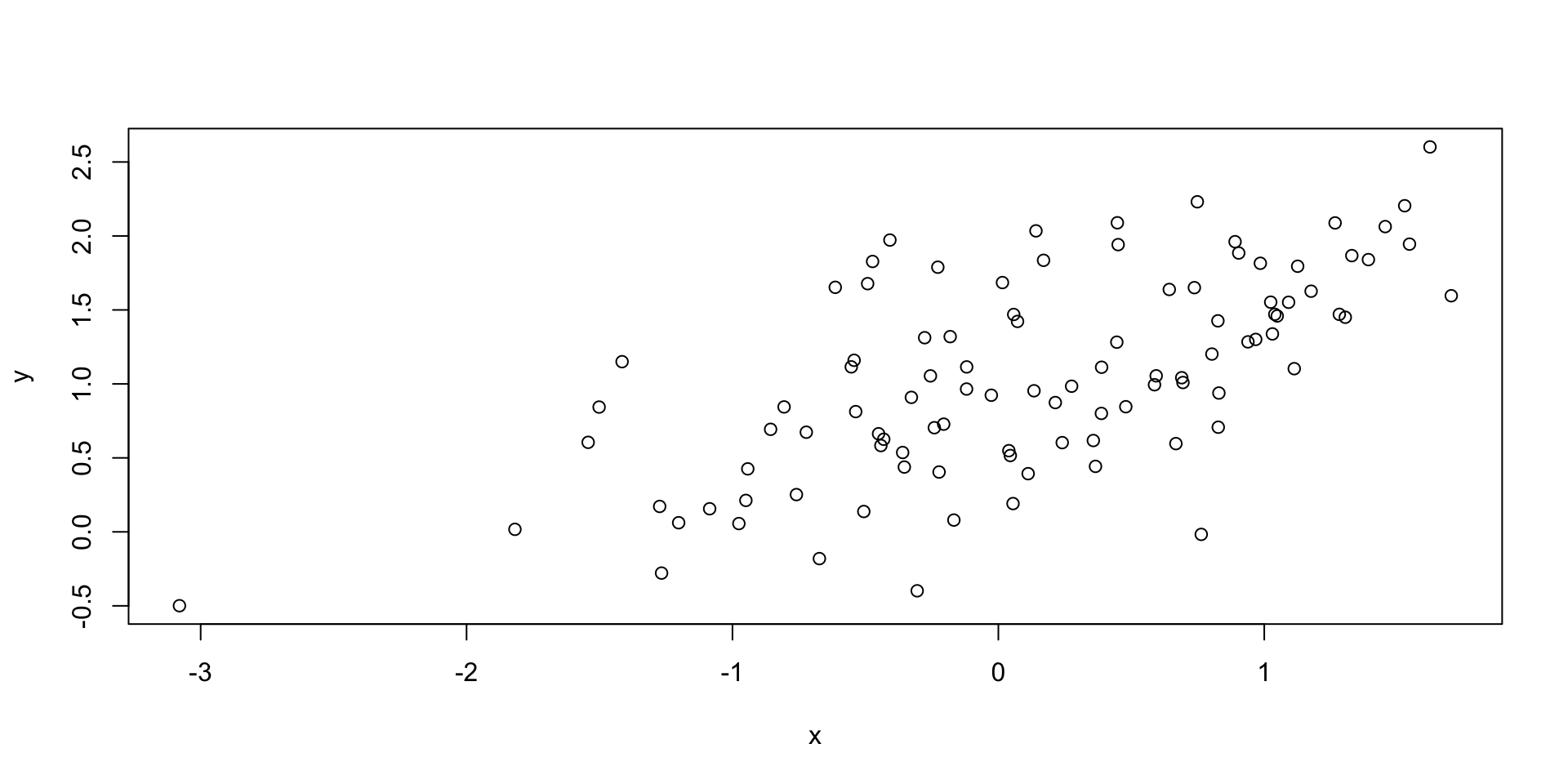 Suppose that, on \(n\) cases, we observe a continuous response \(y_i\) and one explanatory variable \(x_{i}\).