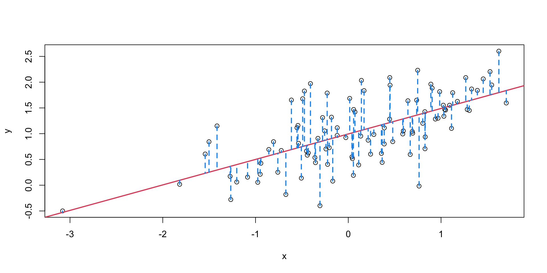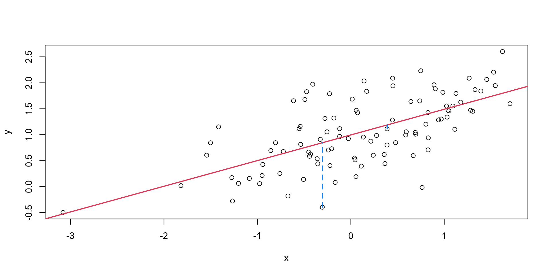 Up until now, we have only defined the regression line as a mathematical entity that we can compute starting from a vector \(y\) and a matrix \(X\).