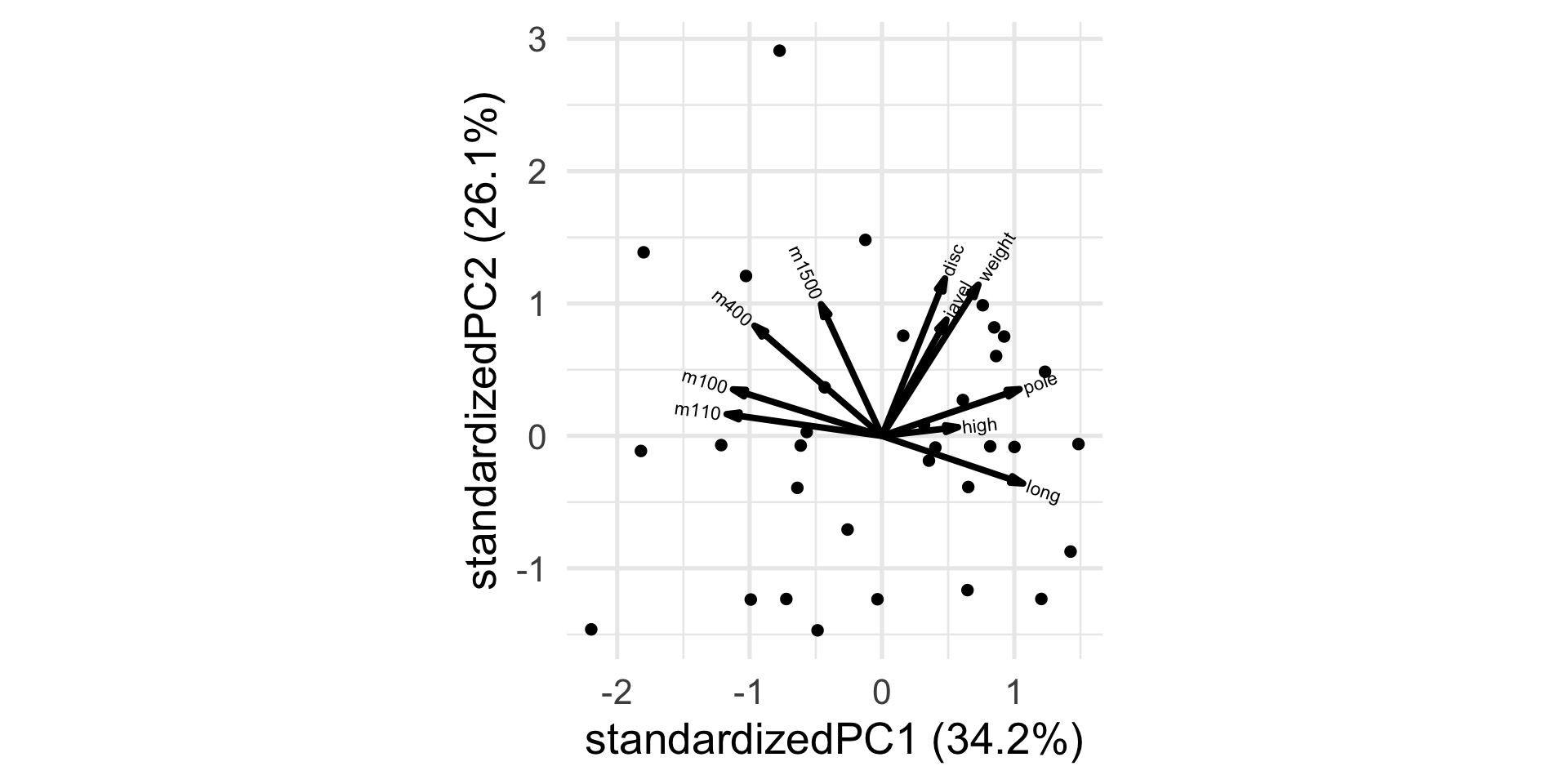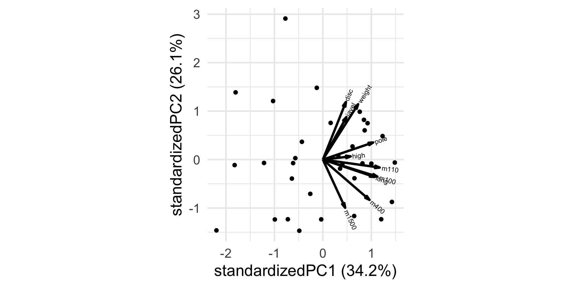 This dataset reports the performances for 33 athletes in the ten disciplines of the decathlon: