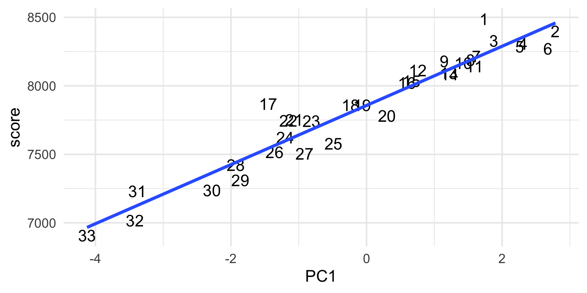 Recall that the principal components are linear combinations of the \(p\) original variables that explain the most variability in the data. E.g., \[ Y_1 = a_{11} X_1 + a_{12} X_2 + \ldots + a_{1p} X_p. \]