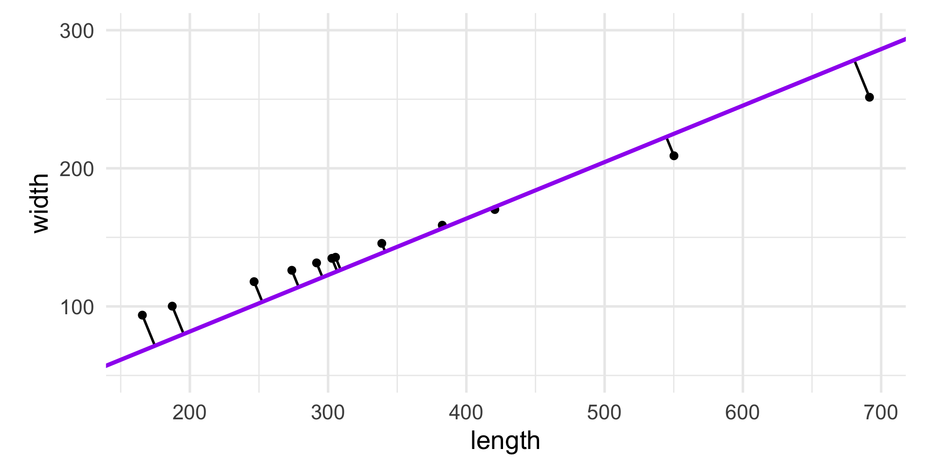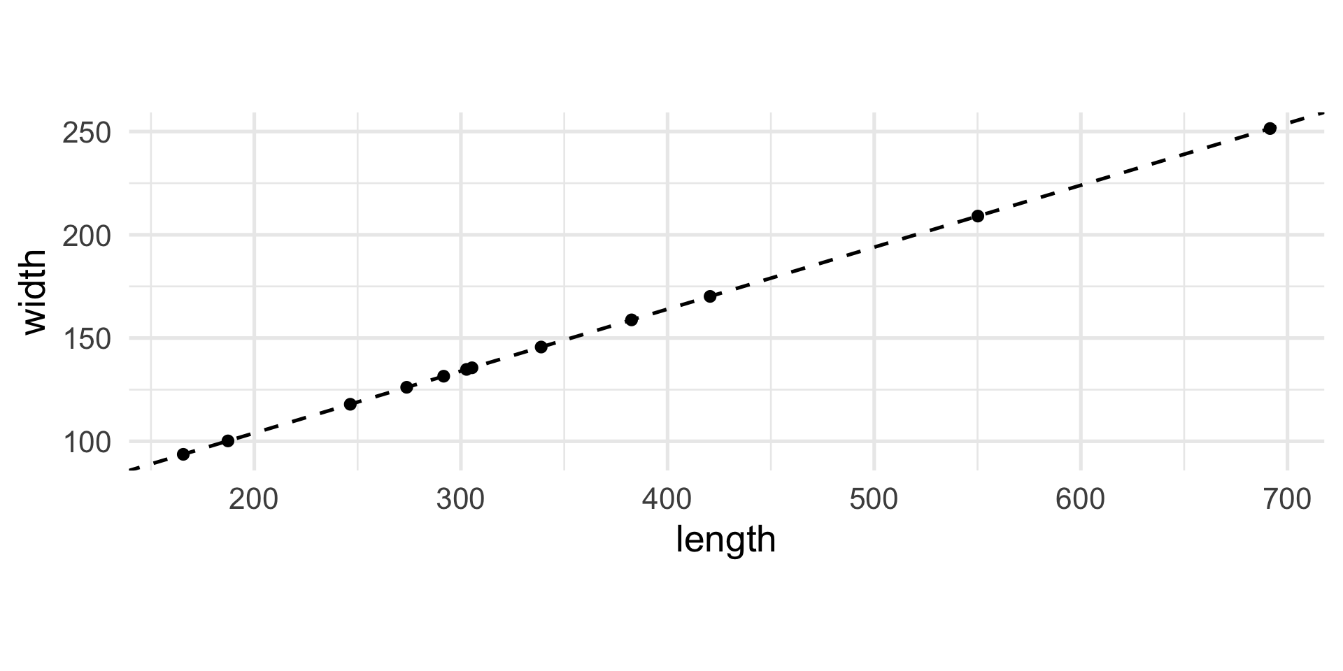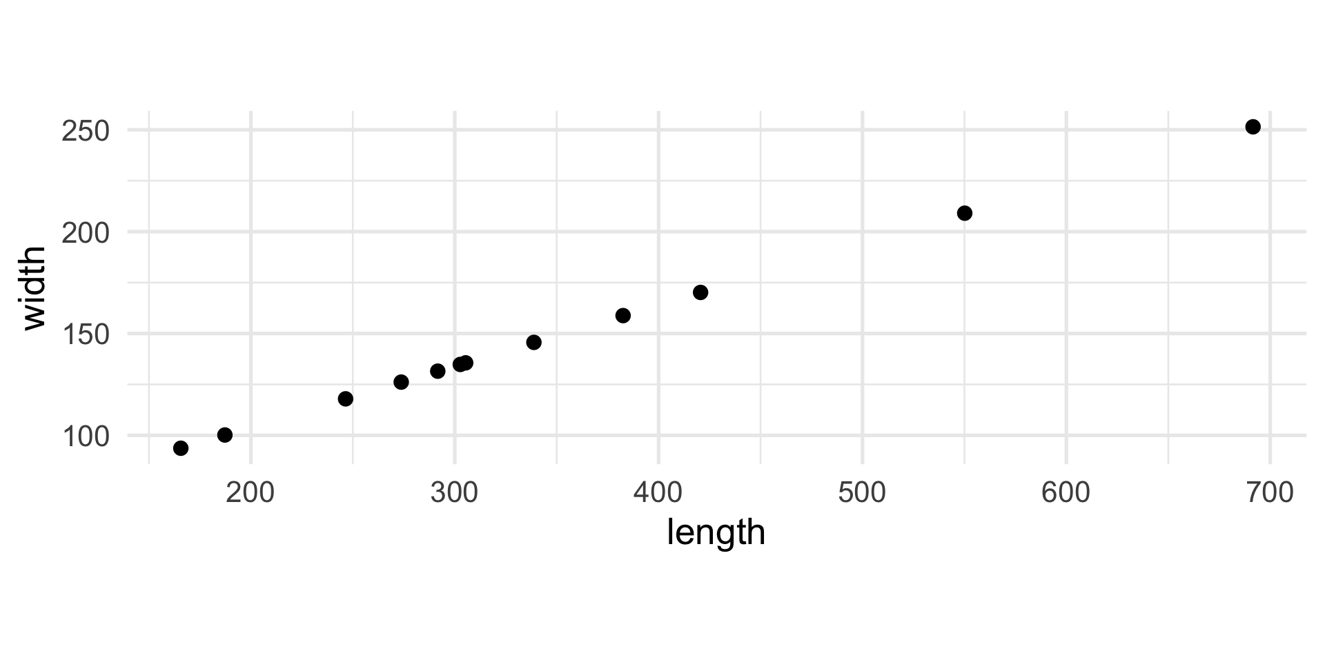 Suppose that we have measured the length and the width of 12 objects and the results are reported in the following table.