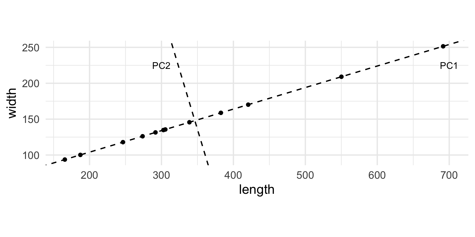 In these cases, dropping the width variable and focusing only on length would be a reasonable way to reduce the dimensionality of the dataset from two to one.