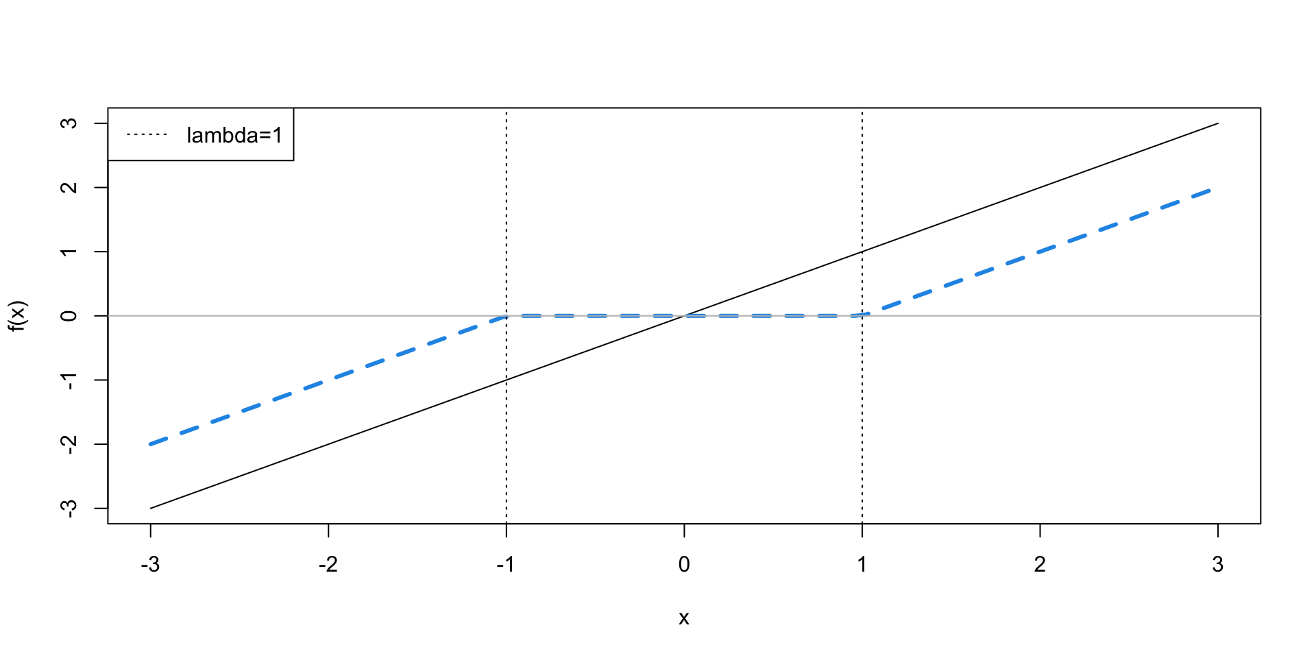 \] which leads to \(\beta = \tilde{\beta} - \lambda\) as long as \(\tilde{\beta}>0\) and \(\lambda<\tilde{\beta}\); otherwise 0 is the minimum.