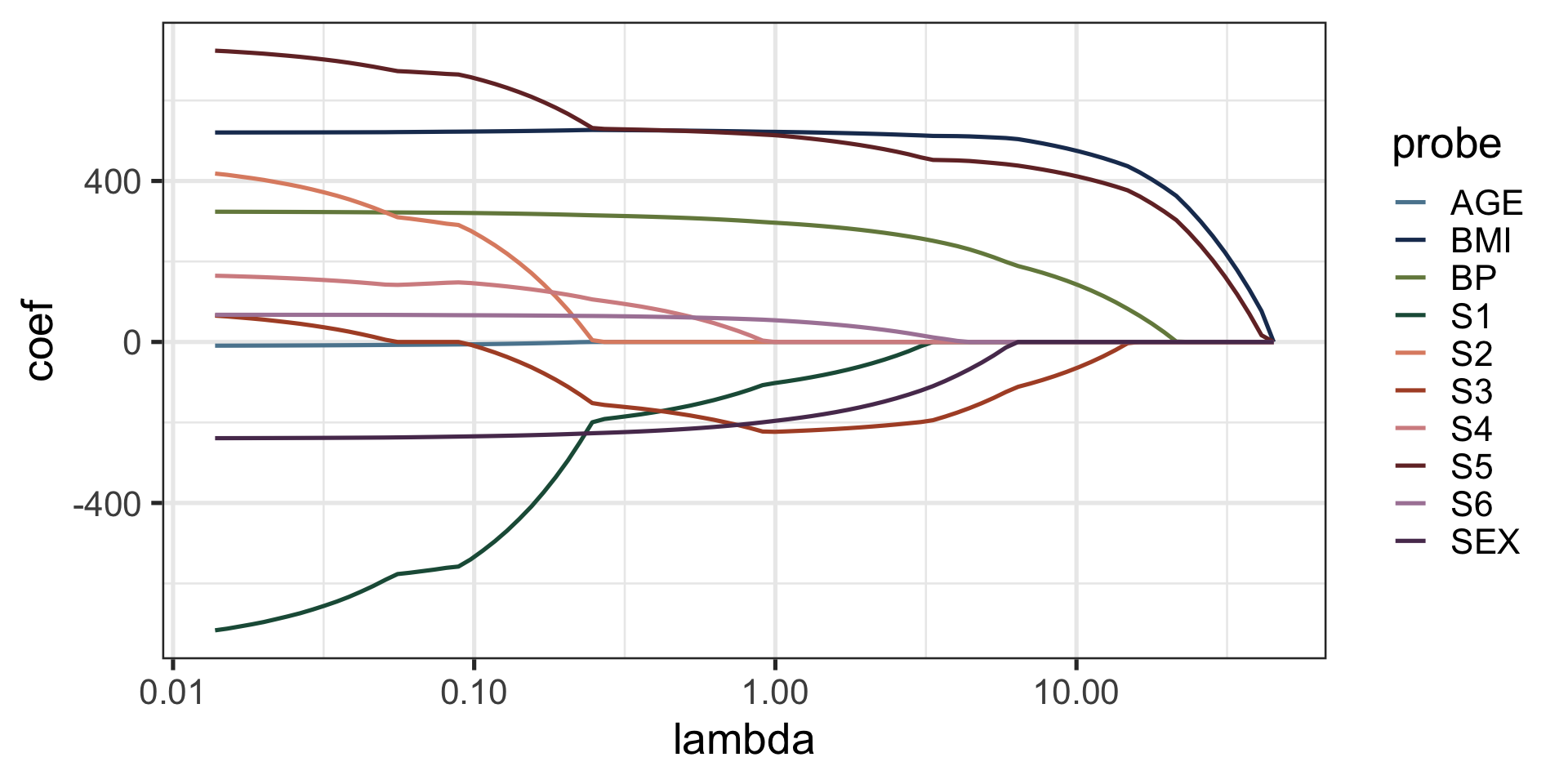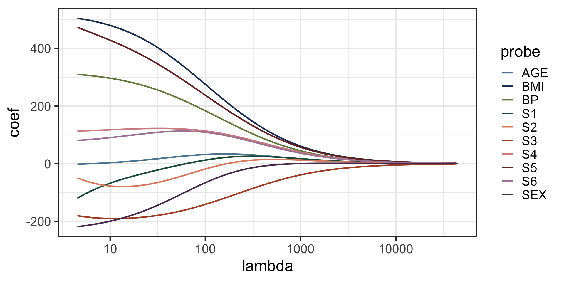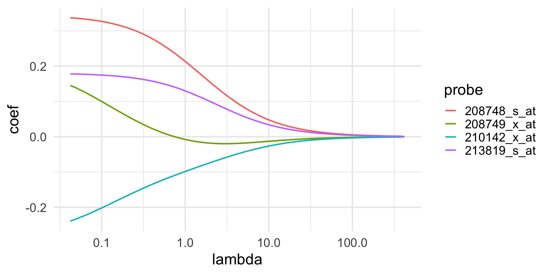 In this way, we can efficiently produce the solution over a grid of \(\lambda\) values.